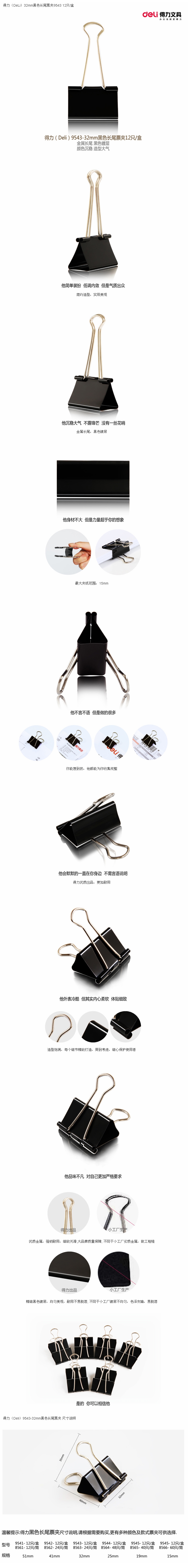 - 商品名稱:得力(deli)盒裝長尾票夾黑色 32mm 3# 9543(12只/盒)