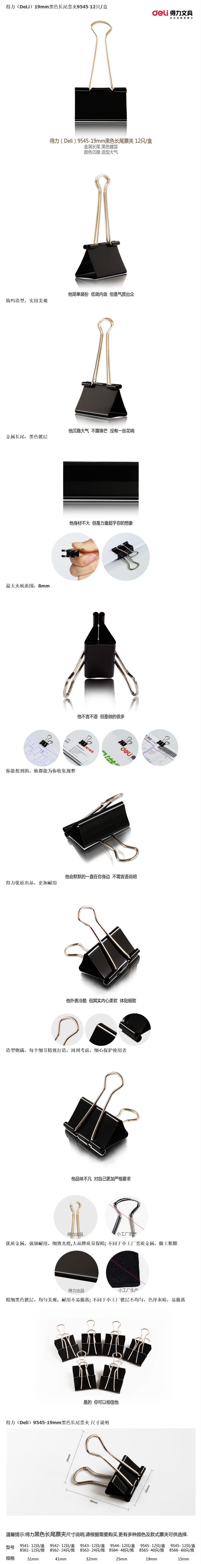 - 商品名稱:得力(deli)盒裝長尾票夾黑色 19mm 5# 9545(12只/盒)