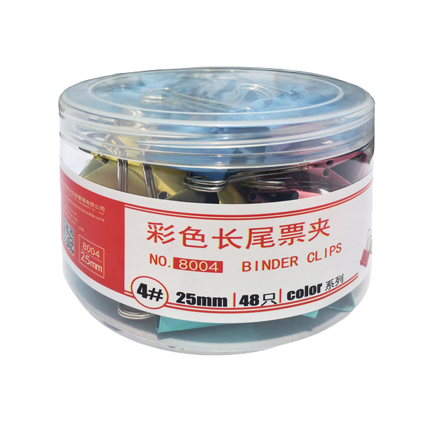 - 商品名稱(chēng):嚴(yán)采(ycai) / (得力)筒裝長(zhǎng)尾票夾彩色25mm 4# 8004(48只/筒)