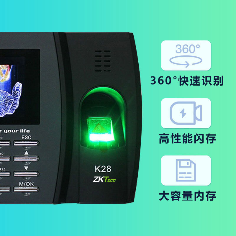 - 商品名稱:ZKTeco/中控智慧K28指紋考勤機 免軟件簽到彩屏打卡機 自助報表