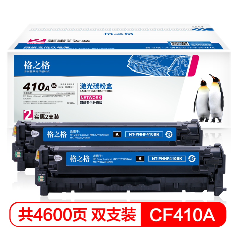 - 商品名稱:格之格CF410A黑色硒鼓PNHF410BK雙支裝適用惠普M452DN M377DW 452DW 452NW M477FNW/DN/NW打印機HP410A硒鼓