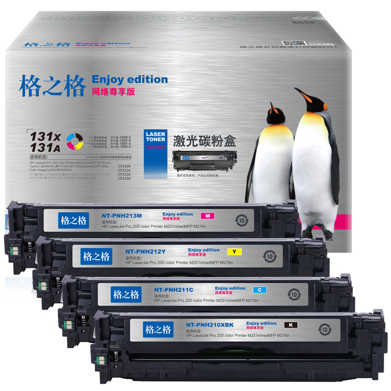 - 商品名稱:格之格CF210A四色套裝NT-PNH210尊享版四支裝適用惠普HP M251n M251nw M276n佳能LBP-7100CN粉盒hp131A硒鼓