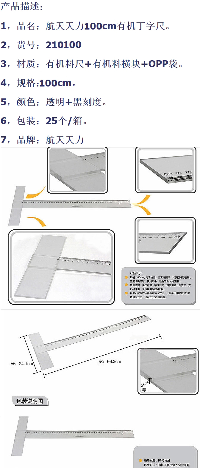 • 商品名稱:航天有機(jī)丁字尺 100cm 20100