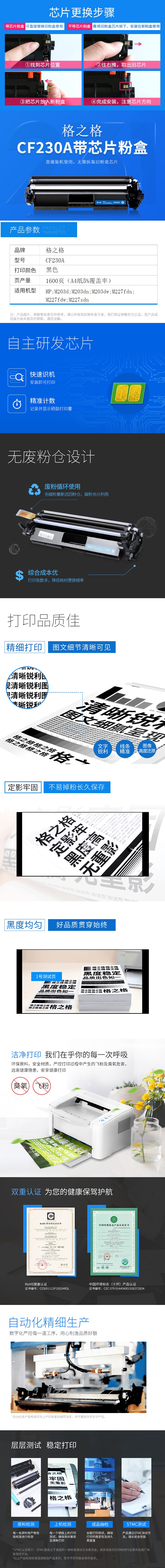 - 商品名稱(chēng):格之格CF230A粉盒帶芯片適用惠普M203d M203dn M203dw M227fdn M227fdw打印機(jī)粉盒hp30A硒鼓
