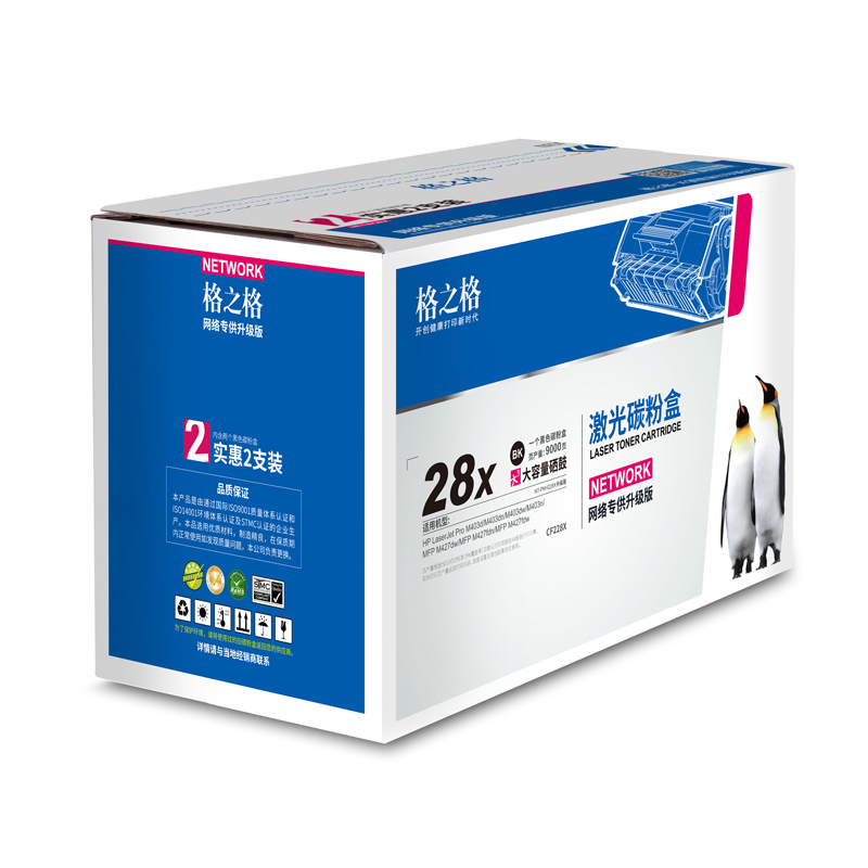 - 商品名稱:格之格228a硒鼓大容量無芯片雙支裝 適用惠普m403d m403dn m403n m403dw m427fdn m427dw cf228a打印機(jī)粉盒