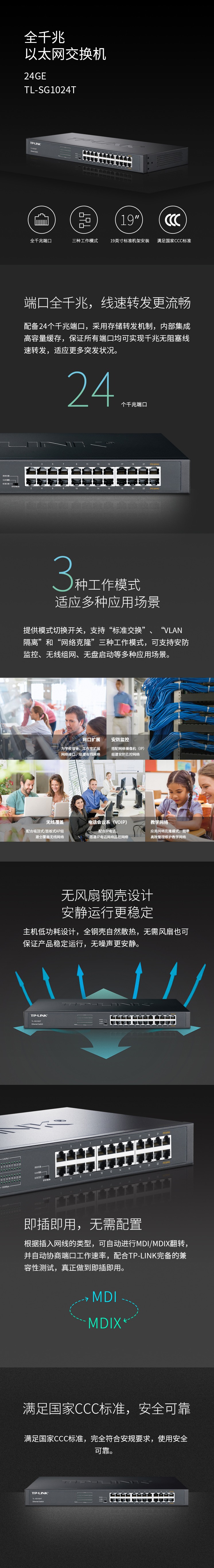 - 商品名稱:TP-LINK 24口全千兆交換機 非網管T系列機架式 企業(yè)級交換器 監(jiān)控網絡網線分線器 分流器 TL-SG1024T