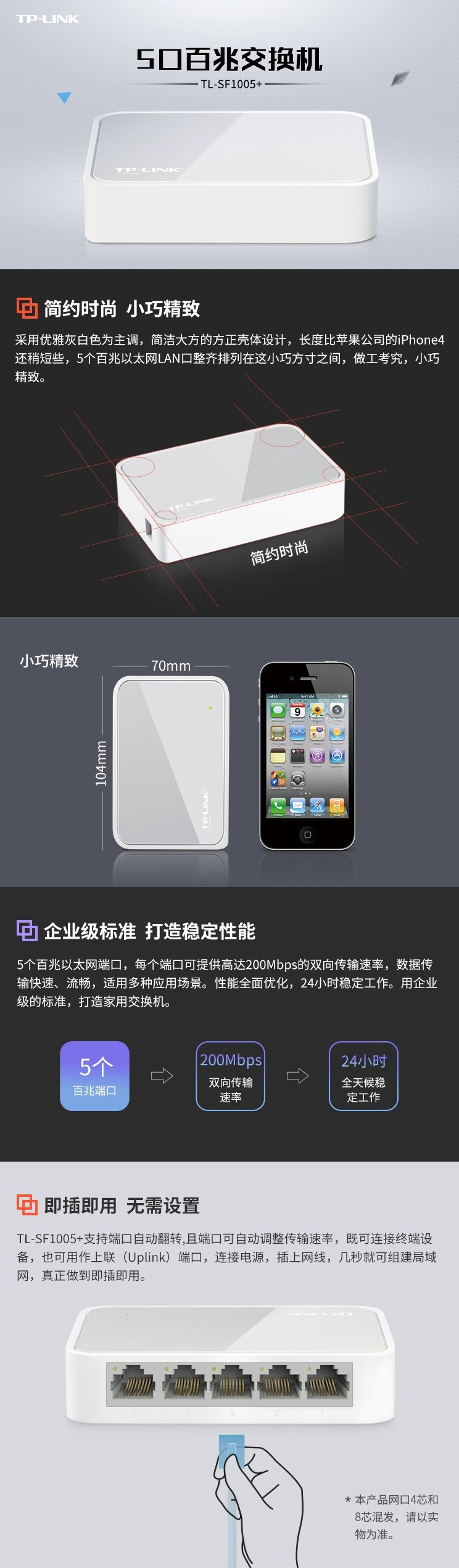 - 商品名稱:TP-LINK 5口百兆交換機(jī) 4口網(wǎng)絡(luò)網(wǎng)線分線器 家用宿舍監(jiān)控分流器 TL-SF1005M