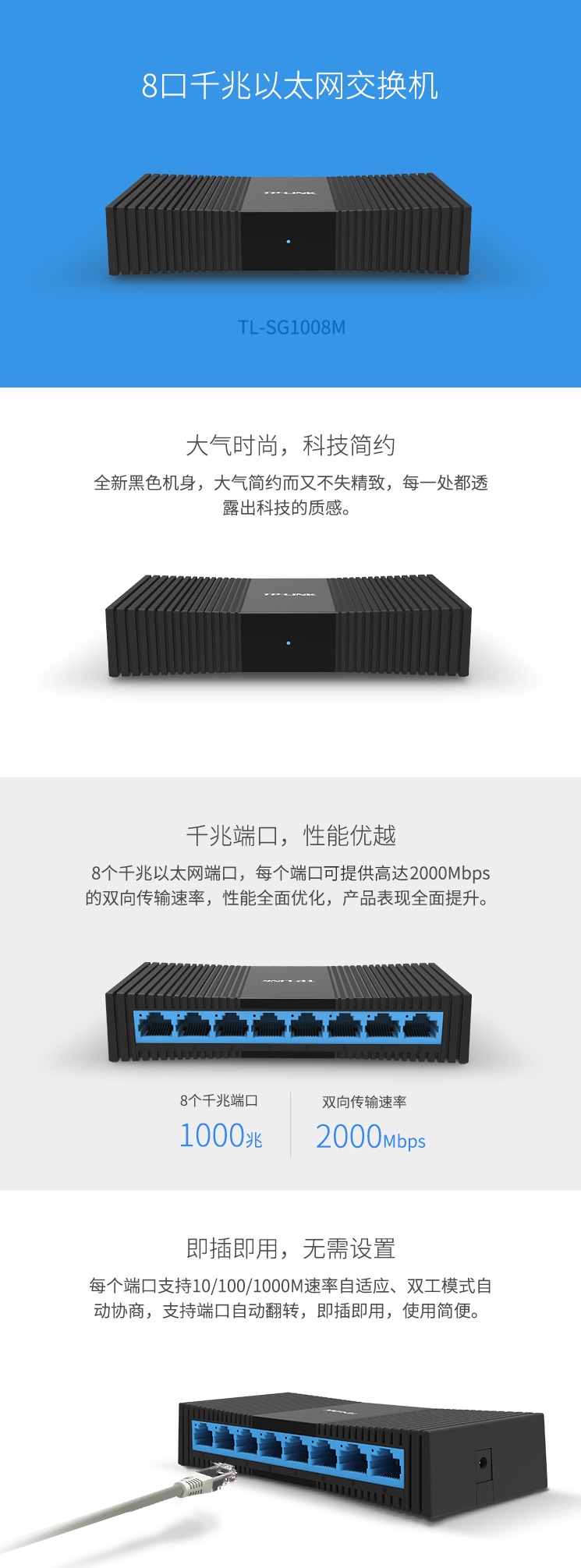 - 商品名稱:TP-LINK 8口千兆交換機(jī) 企業(yè)級(jí)交換器 監(jiān)控網(wǎng)絡(luò)網(wǎng)線分線器 分流器 兼容百兆 TL-SG1008M