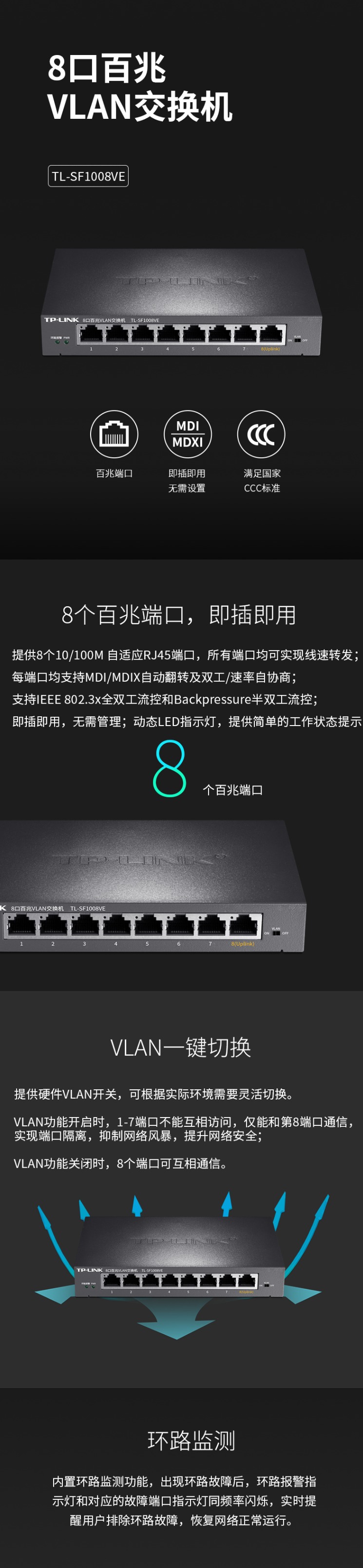 - 商品名稱:TP-LINK TL-SF1008VE 8口百兆VLAN交換機(jī)