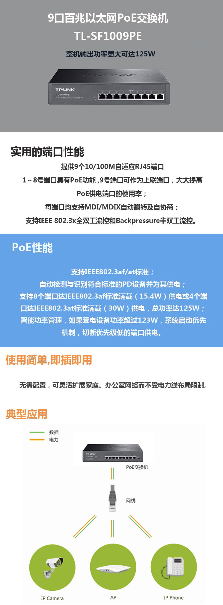 - 商品名稱:TP-LINK SF1009PE 9口百兆8口POE非網(wǎng)管PoE交換機(jī) 功率增強(qiáng)型
