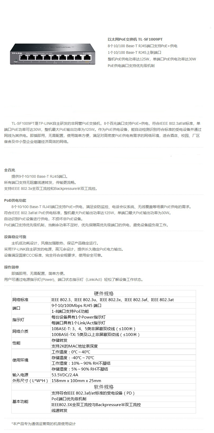 - 商品名稱:TP-LINK TL-SF1009PT 9口百兆8口POE非網(wǎng)管PoE交換機(jī)