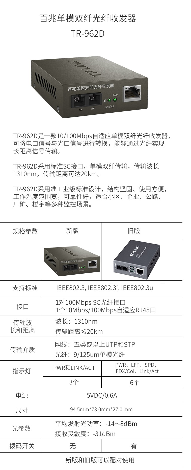 - 商品名稱:TP-LINK TR-962D 百兆單模光纖收發(fā)器