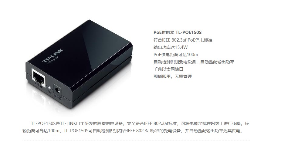- 商品名稱(chēng):TP-LINK TL-POE150S PoE供電器模塊