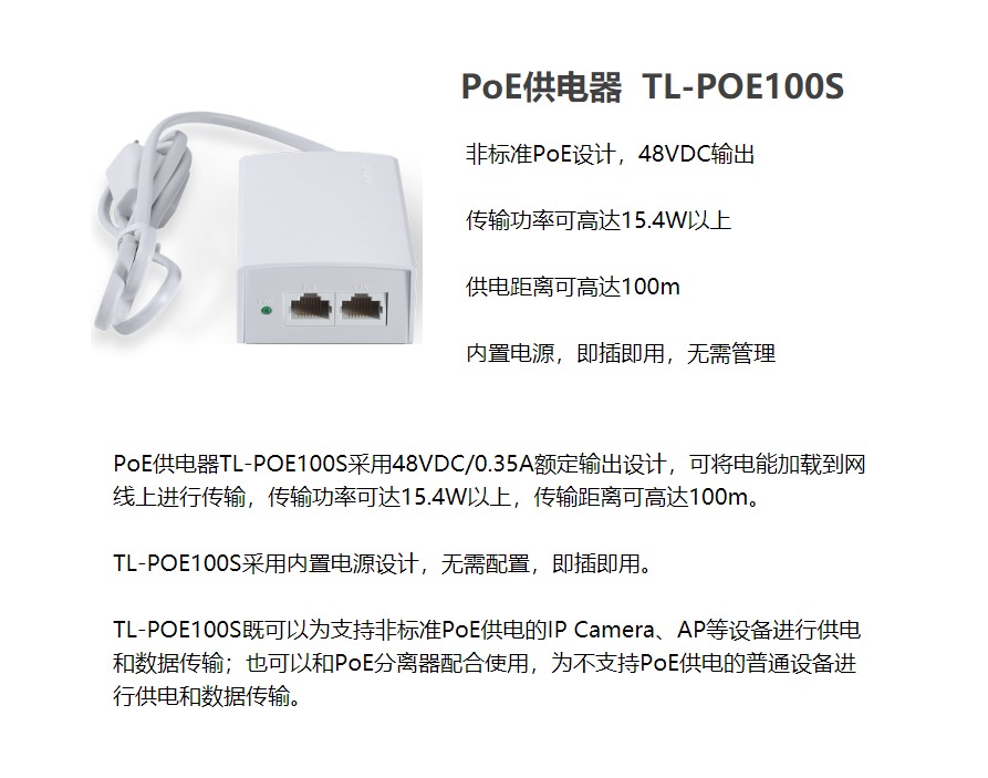- 商品名稱:TP-LINK TL-POE100S PoE供電器模塊