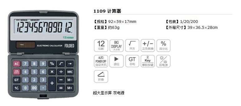 - 商品名稱(chēng):得力(deli)便攜式折疊計(jì)算器 1109