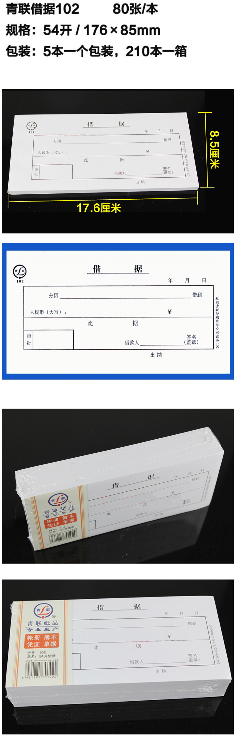 • 商品名稱:青聯(lián)借據(jù) 102(54開,80張/本,5本/封)