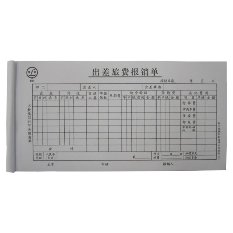 青聯(lián)出差旅費報銷單 黑色 103(35開,75張/本,5本/封)