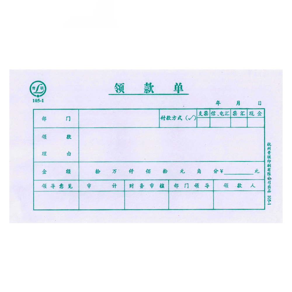 青聯(lián)領(lǐng)款單 105-1(40開,45張/本,10本/封)