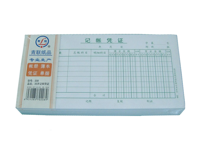青聯(lián)借貸法通用記賬憑證 208(35開,75張/本,5本/封)
