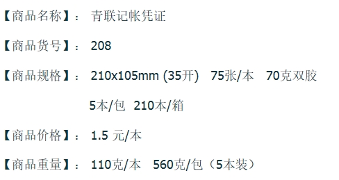 • 商品名稱:青聯(lián)借貸法通用記賬憑證 208(35開,75張/本,5本/封)