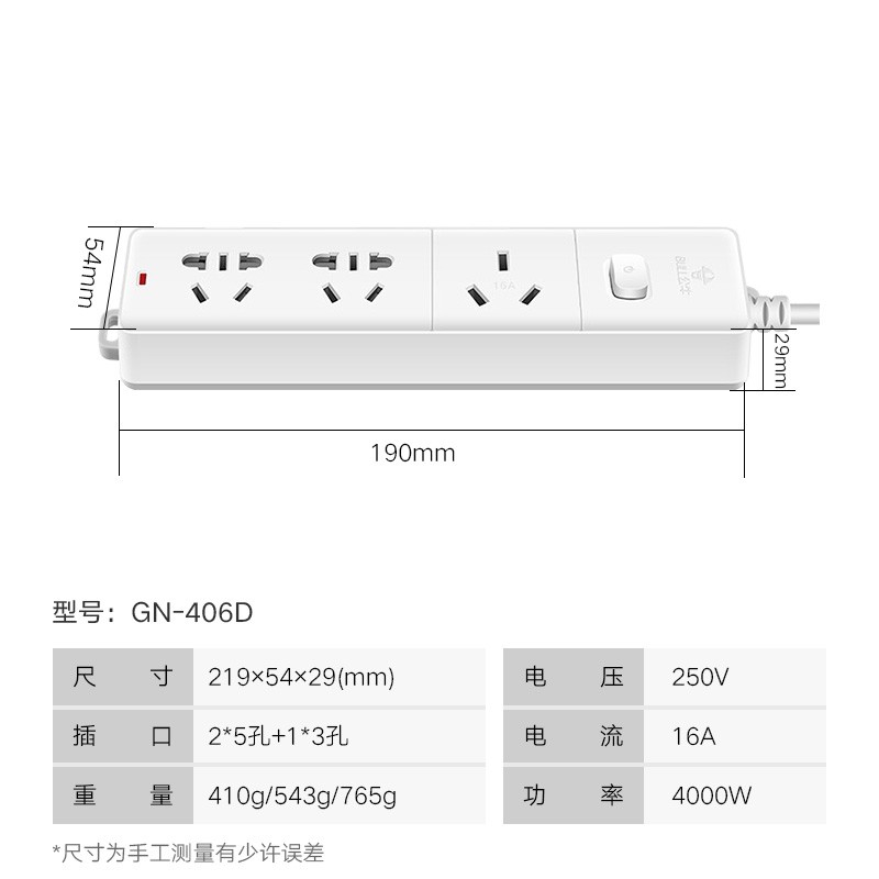 - 商品名稱:公牛(BULL) 大功率16A插座插線板插排/接線板/空調(diào)插座 GN-406D 全長1.8米3位總控