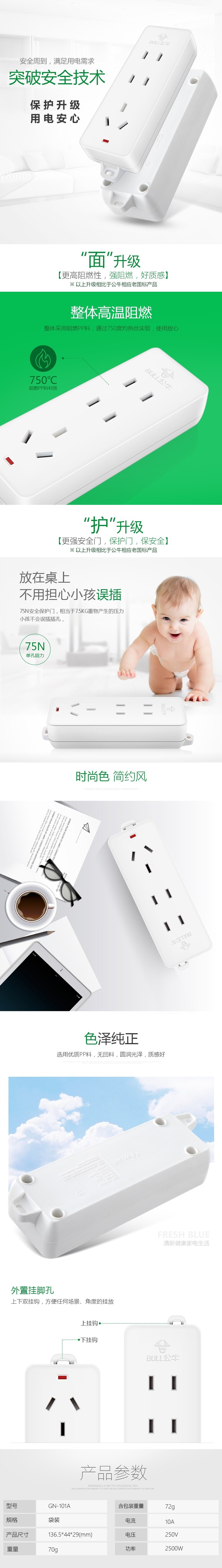 - 商品名稱(chēng):公牛(BULL) 插座新國(guó)標(biāo)/插線板/插排/排插/接線板/拖線板/無(wú)線/自行接線/無(wú)插頭無(wú)電源線 GN-101A 3位無(wú)開(kāi)關(guān)無(wú)線