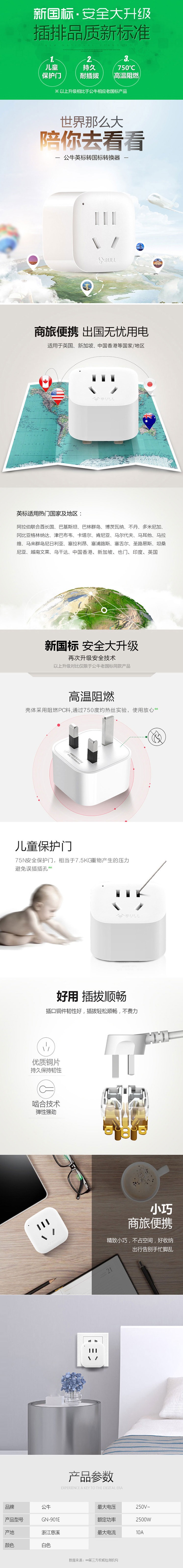 - 商品名稱:公牛(BULL) 電源旅行轉換器插座/轉換插頭/國外使用 GN-901E 英標轉國標(國外使用)