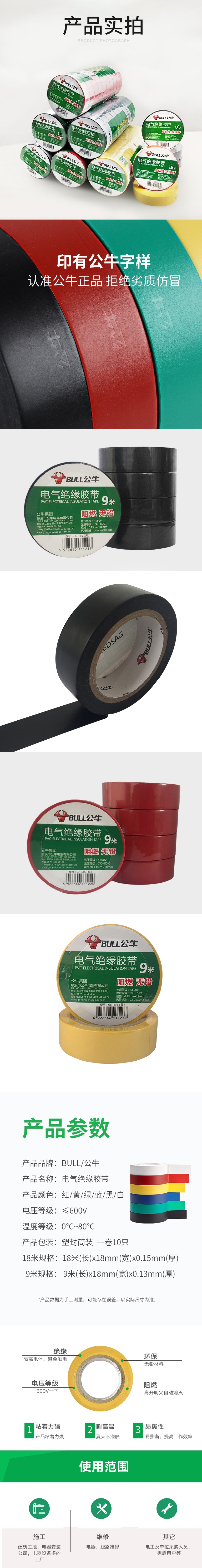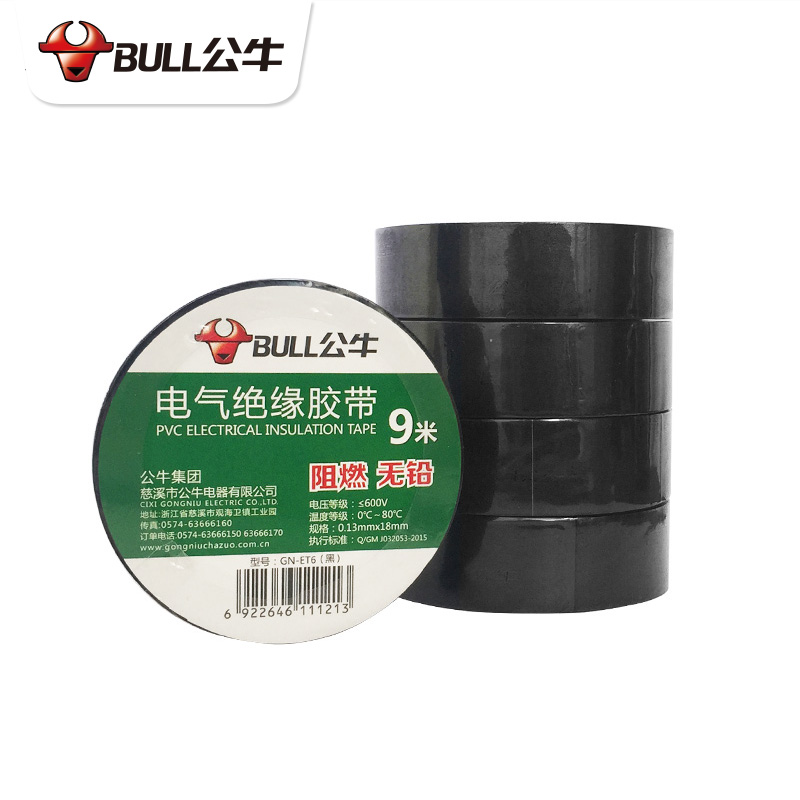 - 商品名稱:公牛(BULL) 電工膠布 電工絕緣膠帶黑色紅色黃色膠帶阻燃耐低溫電工PVC膠布批發(fā) 9米長電工膠帶