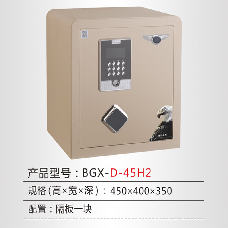 - 商品名稱:恒發(fā)保險箱 智能電子保險箱 多重防護 雙重報警 皮革內飾 金斗士H2系列 BGX-D-45H2 H450*W400*D350mm