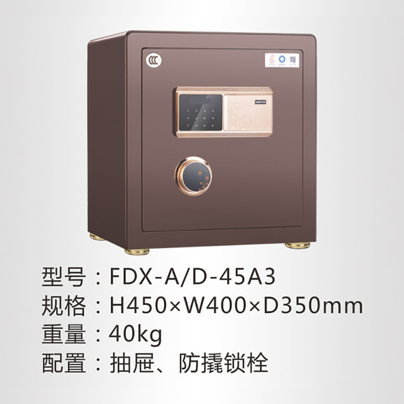 - 商品名稱:恒發(fā)保險箱 智能保險箱 多層防護 雙重警報 木質(zhì)抽屜 指紋加觸屏雙控面板 愛家A3系列 FDX-A/D-45A3 H450*W400*D350mm