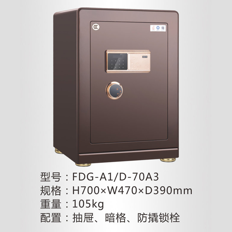 - 商品名稱:恒發(fā)保險箱 智能保險箱 多層防護 雙重警報 木質抽屜 暗倉 指紋加觸屏雙控面板 愛家A3系列 FDG-A1/D-70A3 H700*W470*D390mm