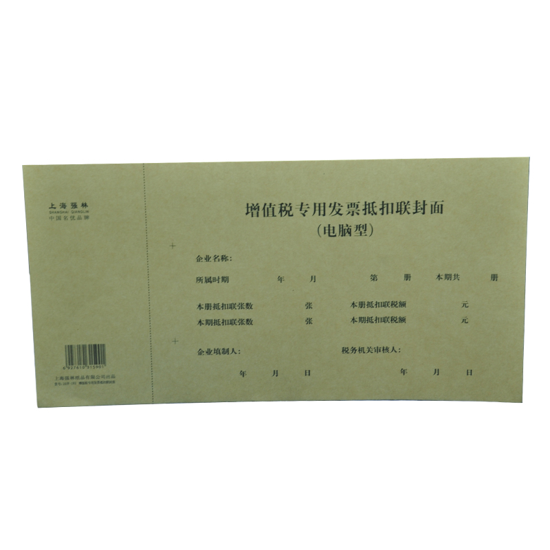 • 商品名稱:強林增值稅專用發(fā)票抵扣聯(lián)封面 192-20(20開,25套/刀)