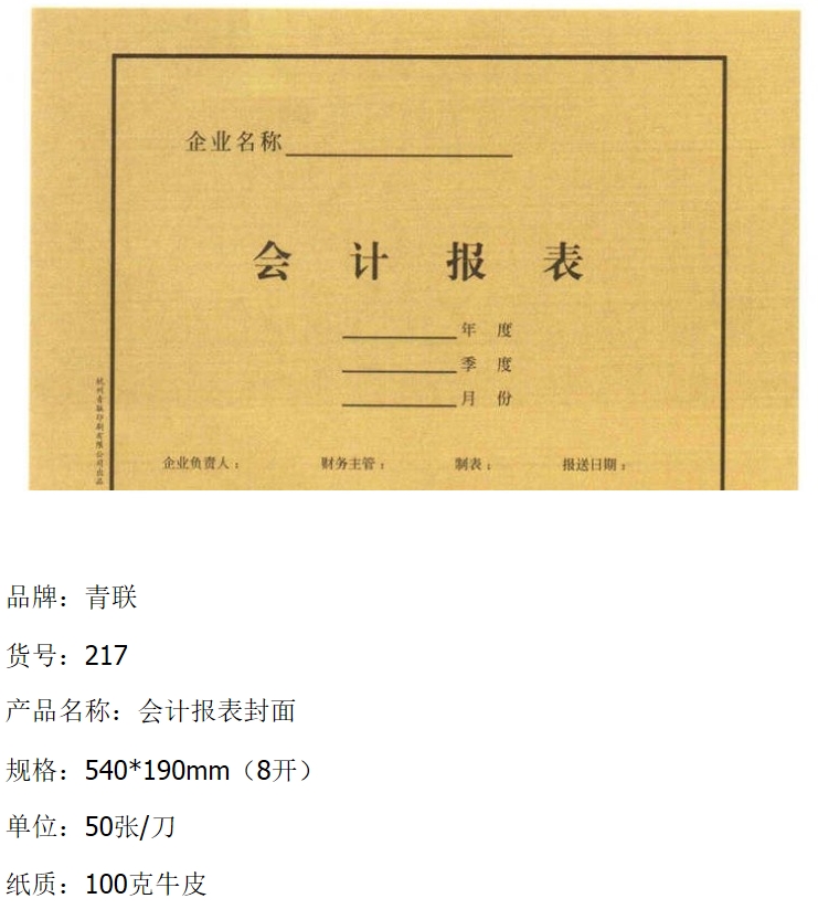 • 商品名稱:青聯(lián)會計報表封面 217(8開,50張/刀)
