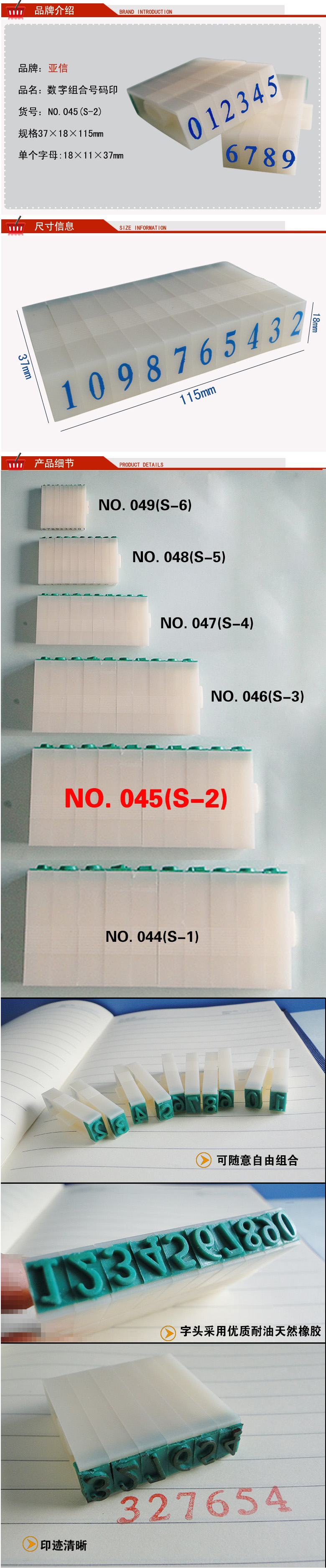 - 商品名稱:亞信數(shù)字組合印 S-2 (0~9)10個(gè)/組