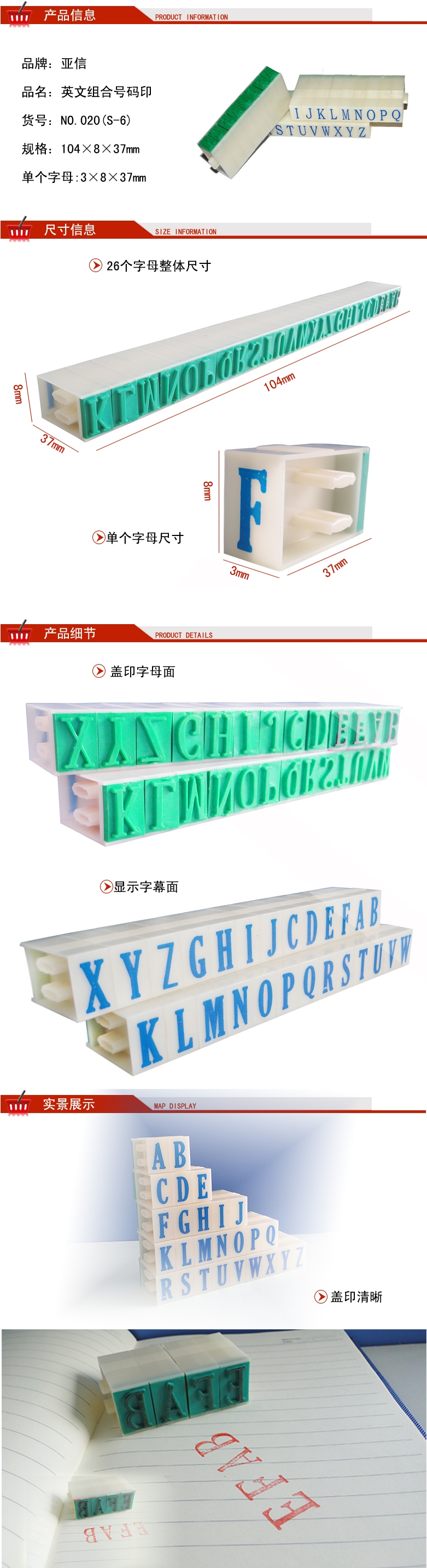 - 商品名稱:亞信英文組合印 S-6 (A~Z)26個/組