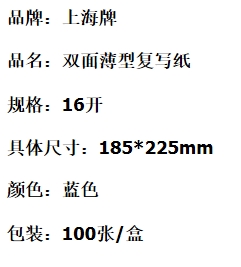 上海復(fù)寫紙藍(lán)色 16K 222(18.5*25.5cm,100張/盒)