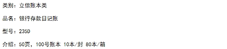 • 商品名稱:立信銀行存款日記賬 235-D丙(24開,100頁/本)