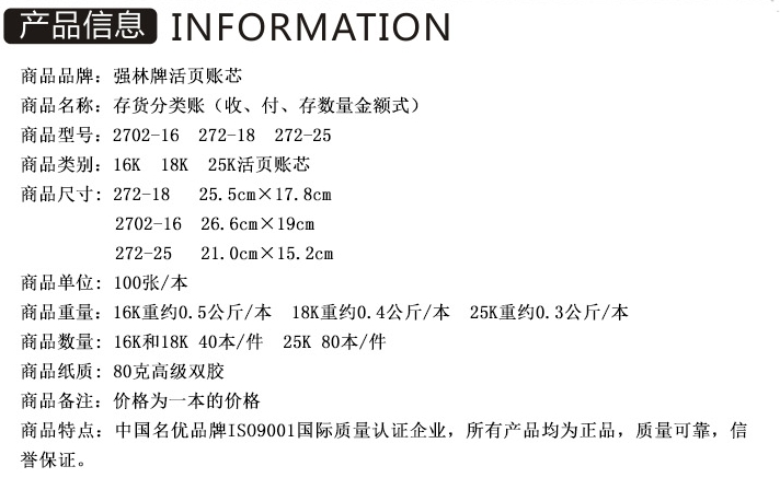• 商品名稱:強(qiáng)林存貨計數(shù)帳 數(shù)量式 272-25(25開,100張/封)