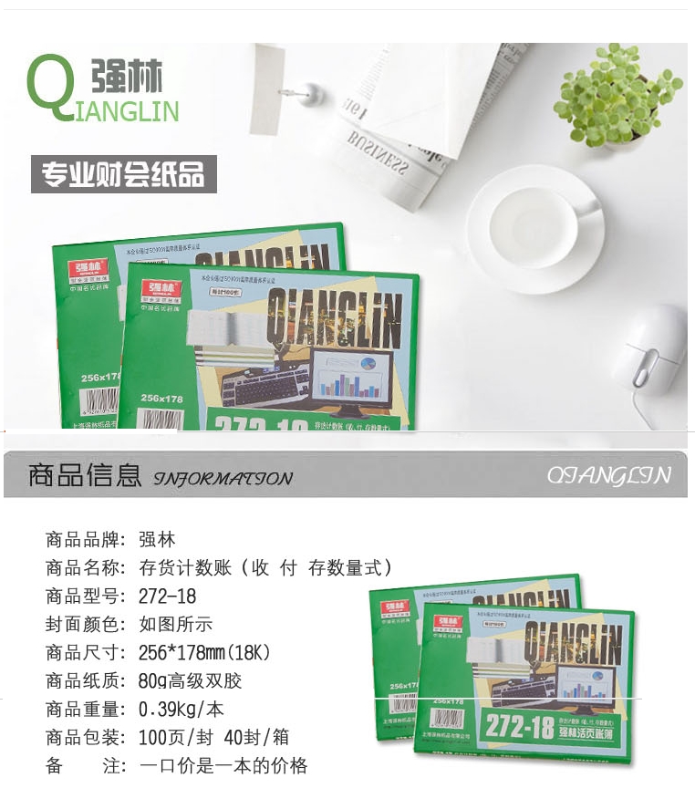 強(qiáng)林存貨計(jì)數(shù)帳 數(shù)量式 272-18(18開,100張/封)