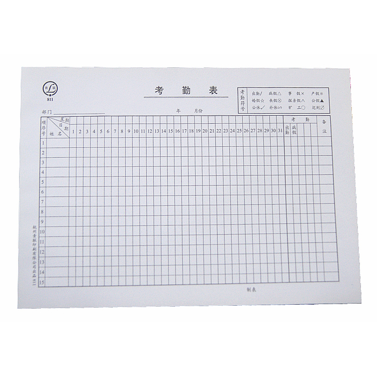 • 商品名稱:青聯(lián)考勤表 811(16開,50張/本)