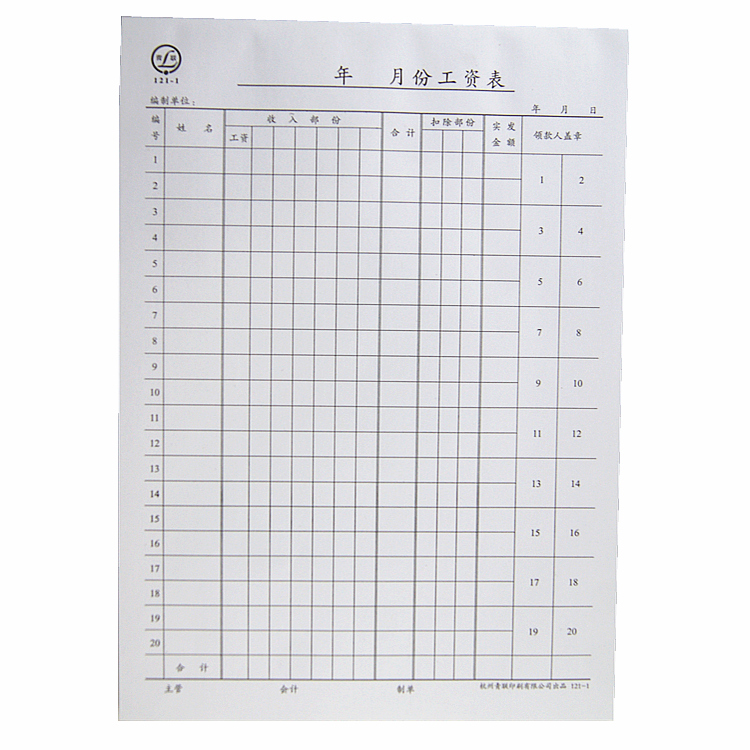 青聯工資發(fā)放表(直式) 121-1(16開,65張/本)