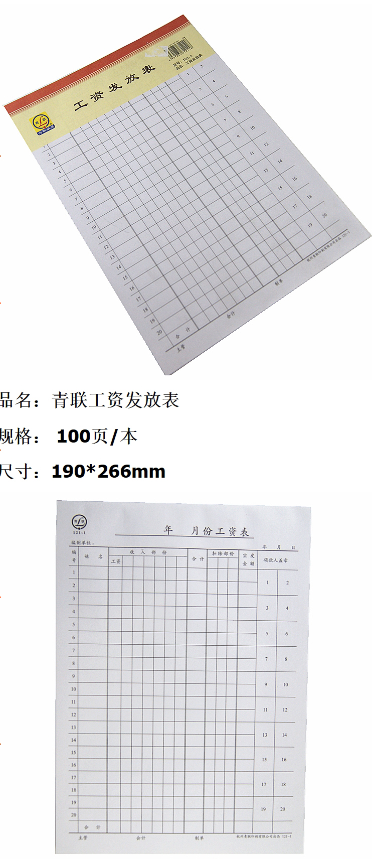 • 商品名稱:青聯工資發(fā)放表(直式) 121-1(16開,65張/本)