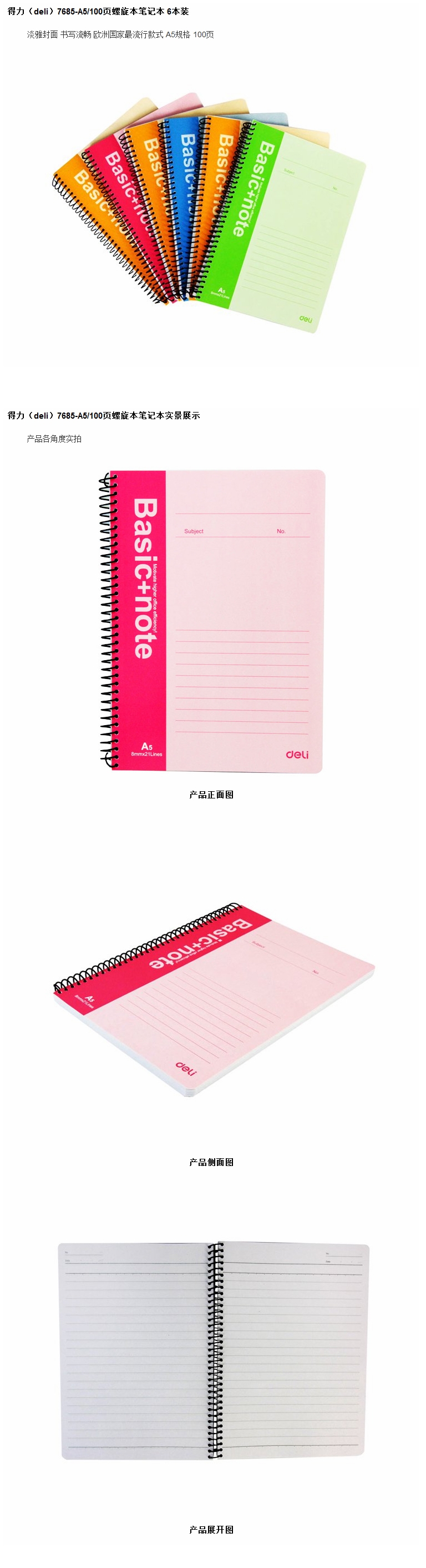 - 商品名稱:得力(deli)螺旋筆記本 100頁(yè) A5 7685