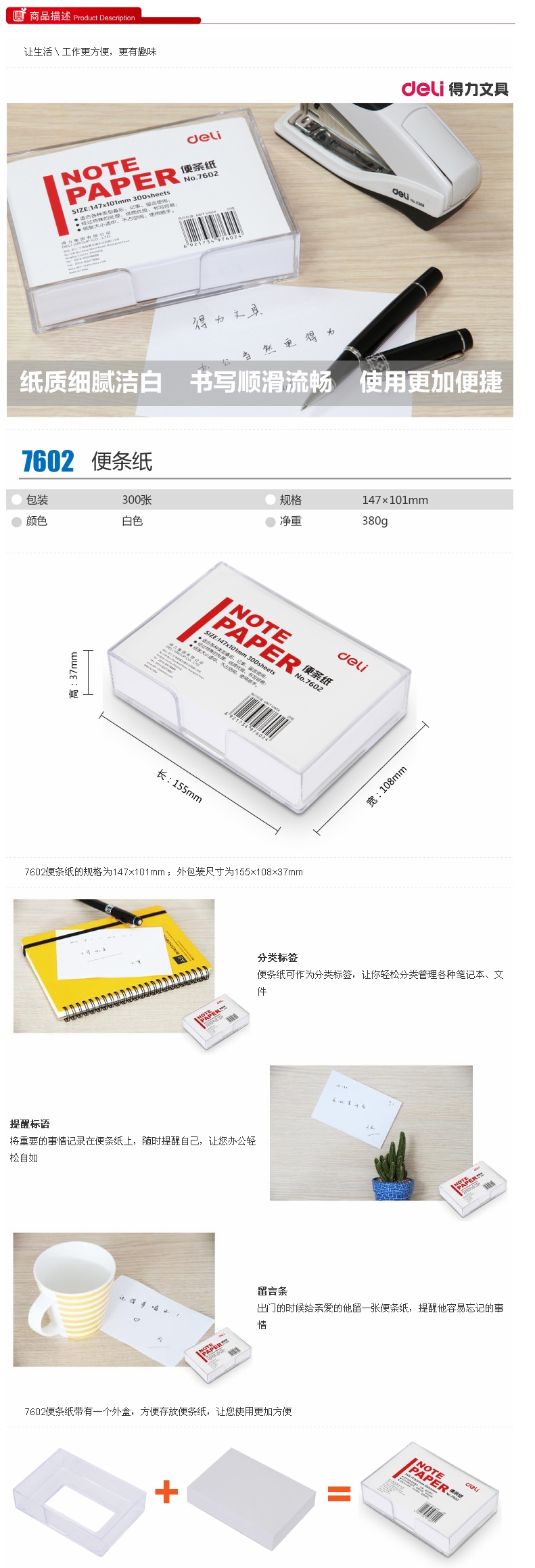 • 商品名稱:得力(deli)盒裝便條紙 7602(147*101mm,18小盒/中盒)