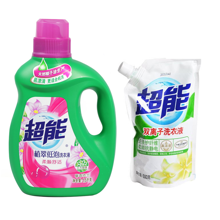 - 商品名稱:超能抗靜電洗衣液 套裝(1.5kg/瓶+500g/袋,6套/箱)