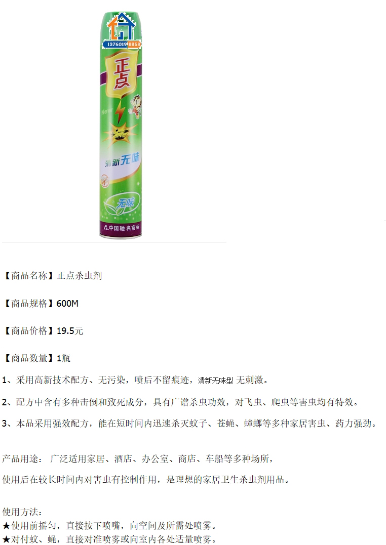• 商品名稱:正點殺蟲劑 無味(600ml/瓶,12瓶/箱)