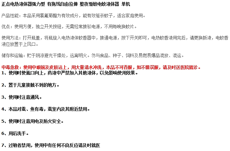 • 商品名稱:正點(diǎn)電熱蚊香液體器