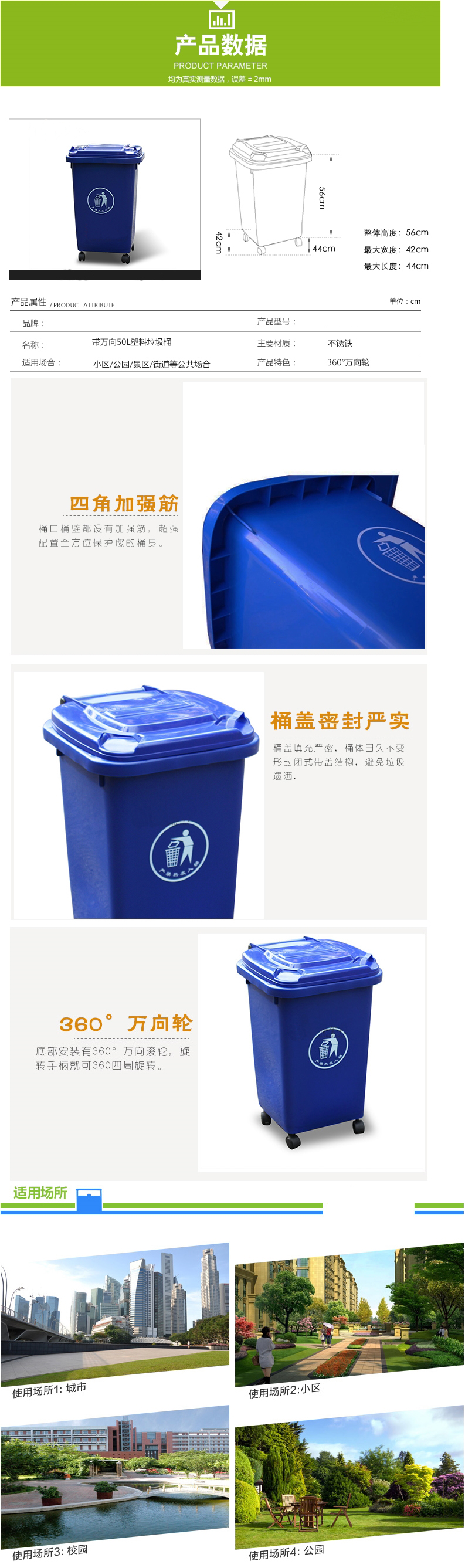 • 商品名稱(chēng):環(huán)衛(wèi)桶/垃圾桶 小號(hào) 帶蓋附配套小輪(50L,外:430*420*560mm)