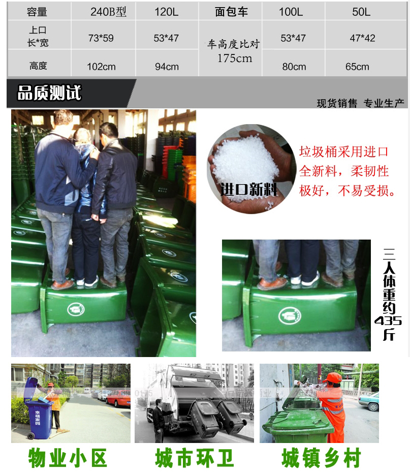 • 商品名稱:環(huán)衛(wèi)桶/垃圾桶 中號 帶蓋附配套小輪(100L,外:480*460*790mm)