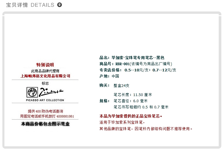 • 商品名稱:畢加索 0.5mm 單支水筆芯 黑色